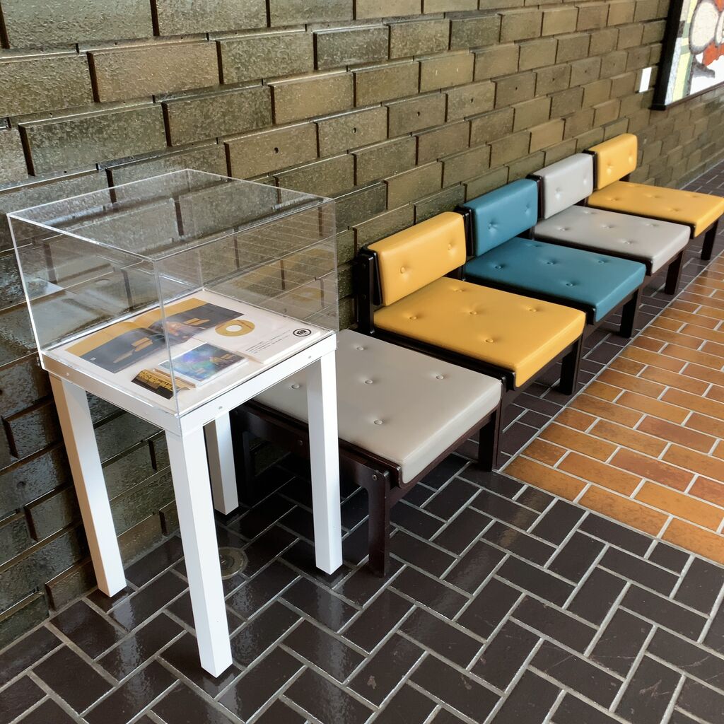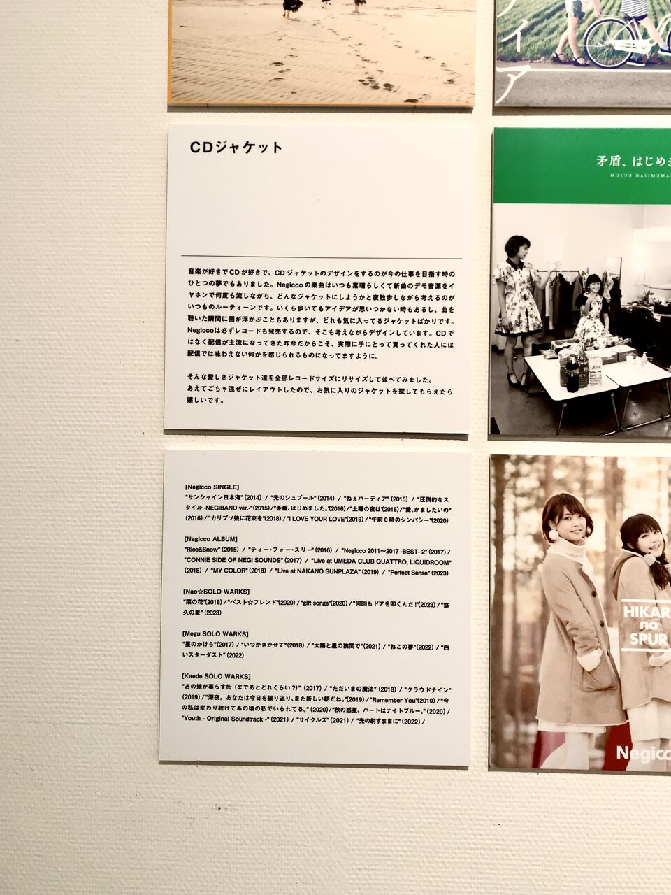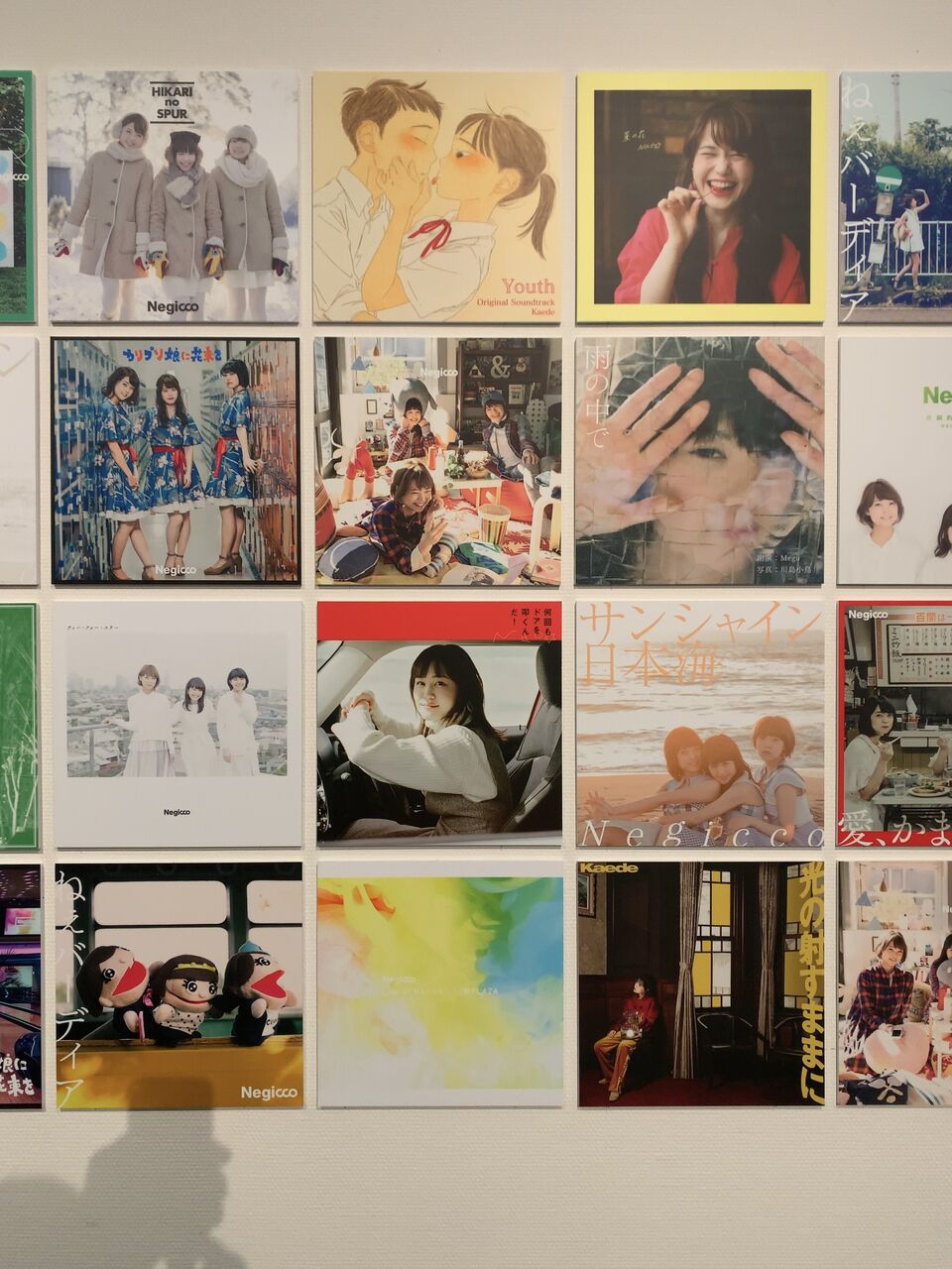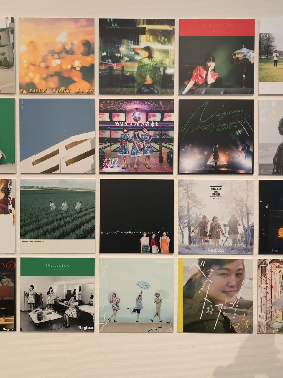 CDジャケットのビジュアル展示ですが、個々の作品はLPレコードジャケットくらいのサイズになっていました。